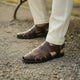 Peshawari chappals are made from soft leather which is sewn onto the rubber tyre sole.